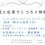 〜 花と紅茶でくつろぐ時間 〜 今回はホワイトデーにちなんで…テーマカラーは「 ホワイト & 春色 」 あたたかい日が増えてきましたね✨3月に入ると いよいよ春本番🌸春は卒業やスタートの季節・・・ある意味リセット!皆さん […]